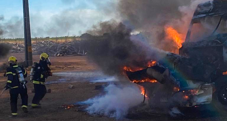 Em Cariri, sul do Tocantins, bombeiros militares apagam chamas que consomem uma carreta / Corpo de Bombeiros