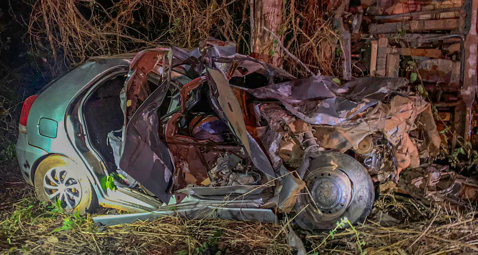 Veículo levava sete passageiros, onde quatro morreram na hora, ao colidir com caminhão, no Bico do Papagaio / Corpo de Bombeiros