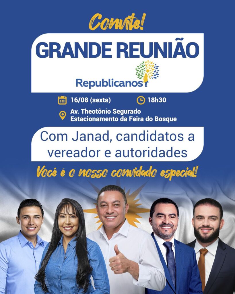 Nesta sexta-feira, 16, o Repuplicanos realiza grande evento em Palmas. O encontro reunirá a Pré-candidata a Prefeita de Palmas, Janad Valcari, Vereadores e uma grande força de lideranças em prol dos pré-candidatos.