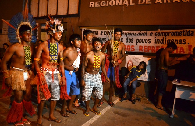 Ocupando o prédio da FUNAI (Fundação Nacional do Índio) há 10 dias, índios fizeram ato público, no início da noite desta segunda-feira, 23, para cobrar urgência no reestabelecimento de energia e melhorias no prédio da Casa do Estudante Indígena em Araguaína. Desta vez, o cacique da aldeia Karajá avisou que caso o problema não seja resolvido em três dias, 500 membros de três aldeias ocuparão o órgão.