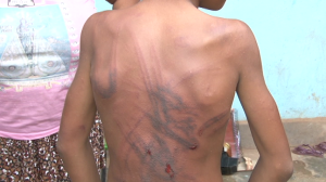 Desta vez, “Neto” espancou o menino com um chicote. As costas do garotinho ficam completamente desfiguradas devido à violência da agressão gratuita. “Muitas vezes ele me bateu; até de pau”, relatou, aos soluços, a pequena vítima, confirmando que já teve o braço quebrado também.