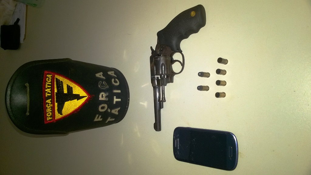 No procedimento de busca, os militares encontraram um revólver calibre 32 e seis munições, duas intactas e quatro deflagradas, em posse de um dos indivíduos.