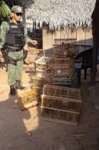 Policiais Ambiental de Araguatins – BPMA apreenderam neste domingo, 13, 23 pássaros que estavam em cativeiro.