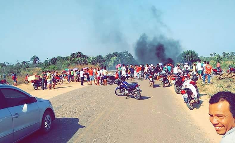 Servidores públicos municipais de Praia Norte, na região do Bico do Papagaio, fazem uma manifestação durante toda esta segunda-feira, 14, na avenida Genésio Gomes, por causa do atraso no pagamento dos salários.