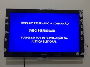 As decisões são do juiz Sérgio Aparecido Paio e atenderem representações da coligação “Araguaína sem Parar”, do prefeito e candidato à reeleição Ronaldo Dimas (PR). Com a punição, no horário da propaganda eleitoral televisiva da coligação de Valderez em Araguaína da tarde desta terça-feira, 6 de setembro, a tela ficou azul com um enunciado informando que a Justiça Eleitoral havia suspendido o programa.