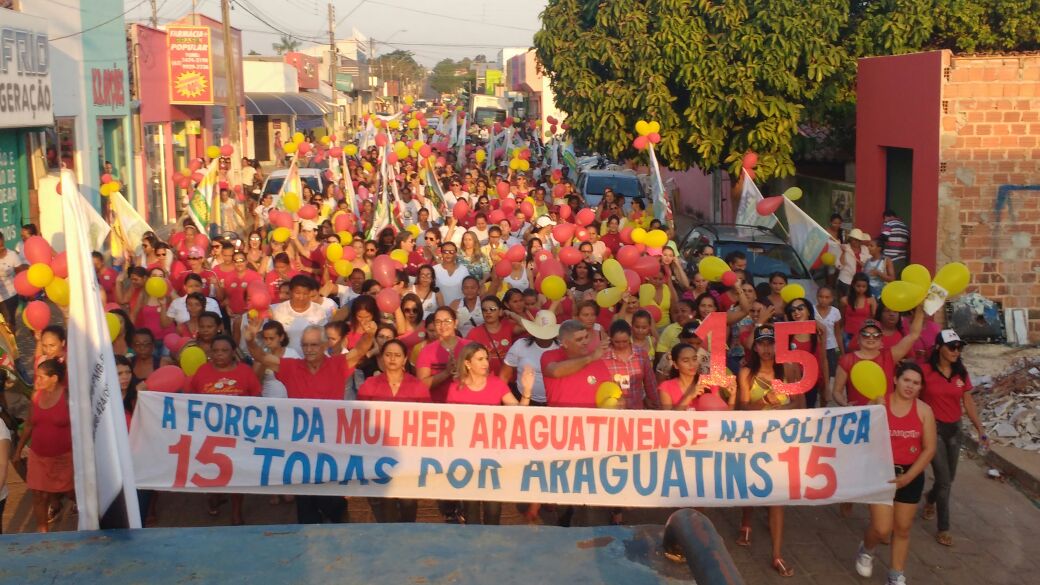 Na tarde desta segunda-feira 05, centenas de mulheres de Araguatins realizaram uma caminhada em demonstração de apoio ao candidato a prefeito Cláudio Santana do PMDB. Com faixas e balões, elas percorreram a Avenida Araguaia, e as ruas Siqueira Campos e Bartolomeu Bueno da Silva. “Acreditamos nas propostas de Cláudio Santana, por isso resolvemos realizar essa grande caminhada, hoje mostramos a força da mulher Araguatinense também politica”. Declarou a participante Janine Mota.