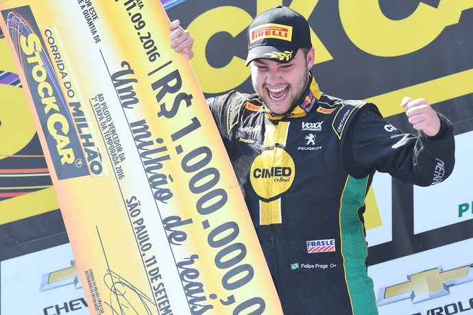 Em um duelo de gerações na Stock Car, o piloto Felipe Fraga, de 21 anos, levou a melhor sobre Rubens Barrichello, de 44, e conquistou neste domingo a vitória na Corrida do Milhão, a prova mais aguardada da temporada. Líder do campeonato, Fraga ampliou ainda mais a vantagem sobre os rivais com o triunfo obtido no Autódromo de Interlagos, em São Paulo. Rubinho foi o vencedor da Corrida do Milhão em 2014.