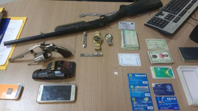 Com Valdinei, os policiais civis localizaram e apreenderam a espingarda calibre 20, usada no crime, um revólver calibre 38, roubado do fazendeiro morto, vários cartões da vítima, além de RGs e CPFs, com nomes falso que Valdinei utilizava.