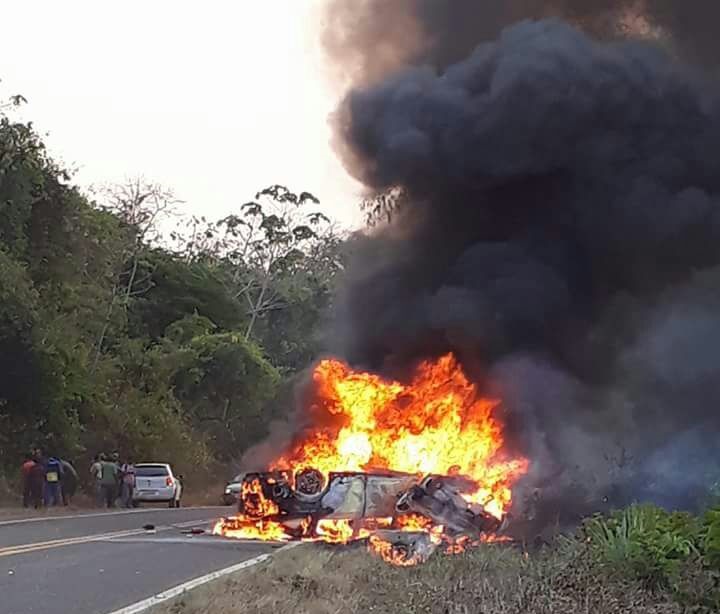 De acordo com a Polícia Rodoviária Federal (PRF), os dois carros, um Gol e um Prisma, colidiram no Km 657, nas proximidades de Açailândia-MA, os veículos pegaram fogo.