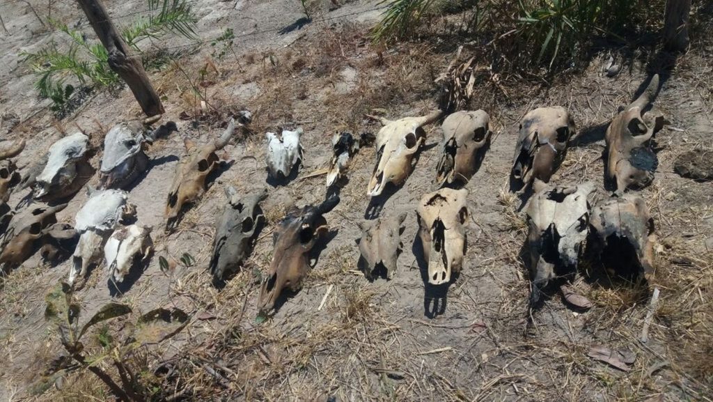 Carcaças de gado encontradas na propriedade do acusado