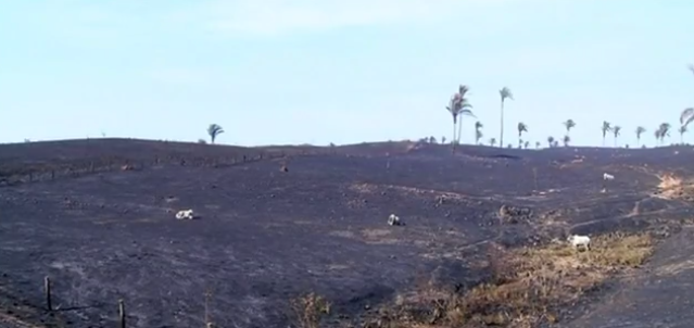 Segundo os Bombeiros, a área que liga as cidades de Carmolândia e o povoado de Jacilândia, em Araguanã, foi quase toda incendiada. Até onde a vista alcança está tudo queimado, disse o major Guimarães Filho, comandante do Corpo de Bombeiros em Araguaína.