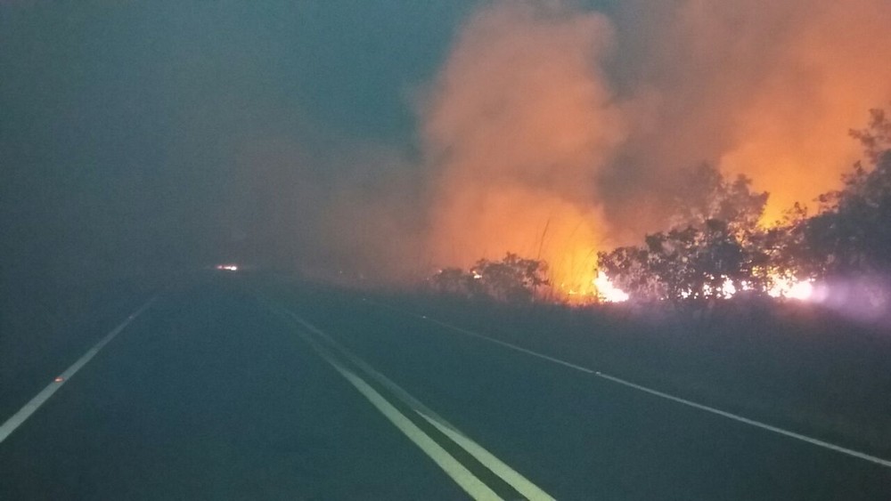 A PRF e a Polícia Militar estiveram no local para preservar a segurança de quem trafegava pela rodovia, já que o fogo se alastrou pela região.