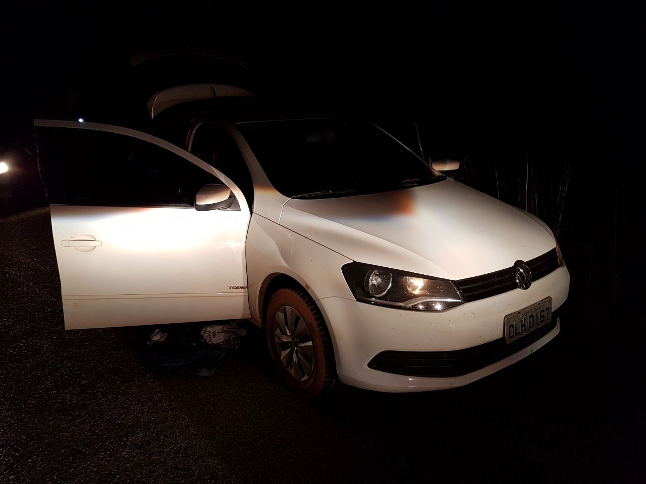 Ao perceberem a aproximação das viaturas da Polícia Civil, dois criminosos, que estavam no interior do veículo, abandonaram o mesmo e empreenderam fuga pela vegetação, às margens da rodovia, deixando cair uma arma de fogo de fabricação artesanal.