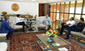 O governador Marcelo Miranda recebeu na manhã desta terça-feira, 12, em seu gabinete, o prefeito e o vice-prefeito de Talismã, Diogo Borges de Araújo e Adão Melo, respectivamente, além do presidente da Câmara de Vereadores, Wellington Borges. Objetivo da audiência foi apresentar ao governador algumas demandas nas áreas da saúde e infraestrutura. Também solicitaram medidas para amenizar os efeitos da estiagem na zona rural do município.