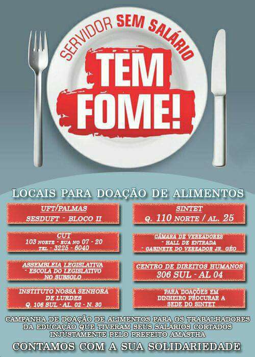 Um banner pedindo alimentos para os professores circula nas redes sociais e nele, também há a justificativa da campanha e os locais onde as pessoas podem doar.