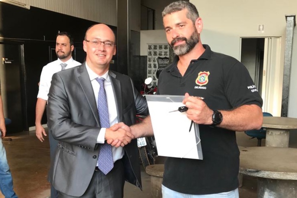 Com nova identidade visual e já seguindo a padronização nacional, o complexo de Delegacias Especializadas de Araguaína e a Central de Atendimento da Polícia Civil receberam nesta sexta-feira, 30, a visita do secretário da Segurança Pública, Cristiano Sampaio. Na oportunidade, além da fachada nova, o Complexo recebeu uma camionete zero quilômetro para auxiliar nos trabalhos desenvolvidos pelas delegacias em Araguaína e municípios circunvizinhos. O veículo foi entregue pelo secretário Cristiano Sampaio ao titular da Delegacia Especializada de Investigações Criminais (DEIC Norte), José Anchieta de Menezes Filho.