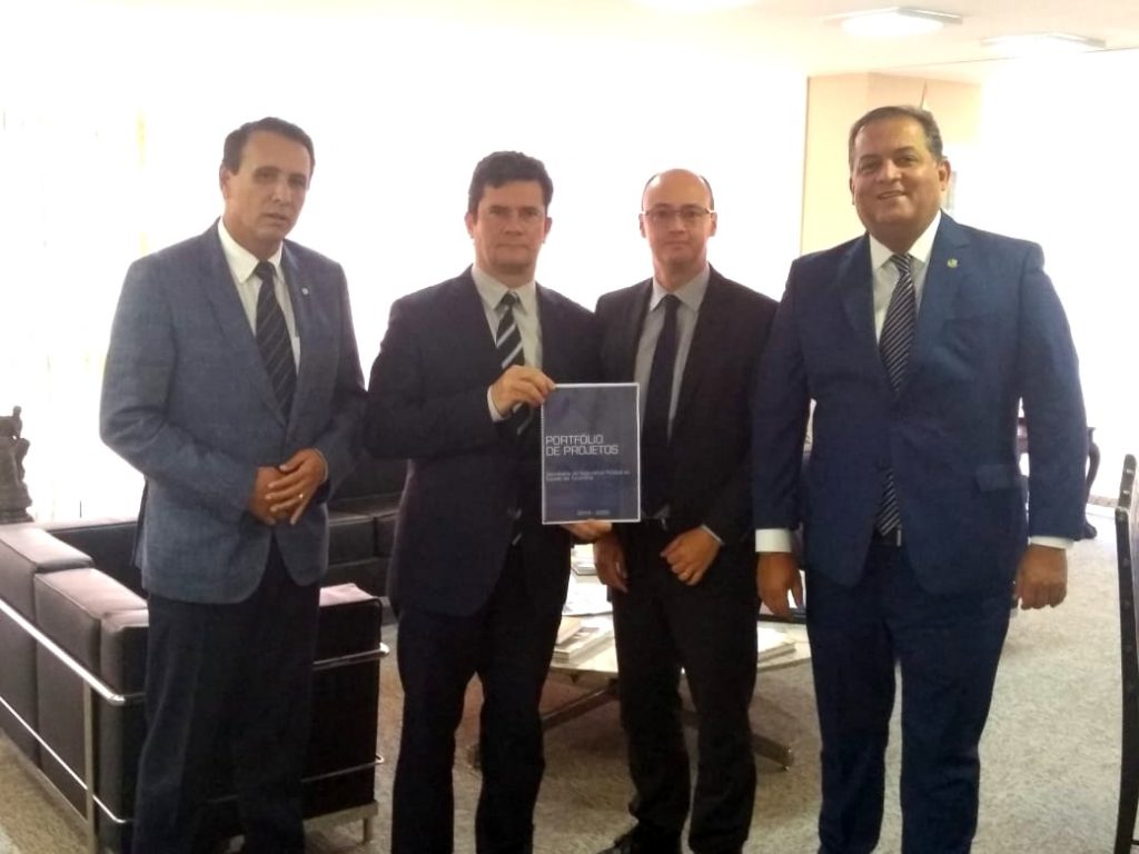 Na reunião com o ministro Moro, o Secretário apresentou o portfólio de investimentos do Tocantins em Segurança Pública e informou que o Estado cumpriu todos os requisitos do Sistema Único de Segurança Pública (SUSP) para que possa receber recursos do Fundo Nacional de Segurança Pública. Para tanto, o Tocantins criou o Conselho Estadual de Segurança Pública, a Lei do Fundo Estado de SP, fez a coleta de material do perfil genético, criou a Divisão de Combate à Corrupção (Decor) em conformidade com a portaria ministerial nº 631, e estabeleceu o Plano Estadual de Segurança Pública (PESSE) Acompanharam a visita do secretário Cristiano Sampaio ao ministro Sérgio Moro, o senador Eduardo Gomes e o deputado federal Carlos Gaguim.