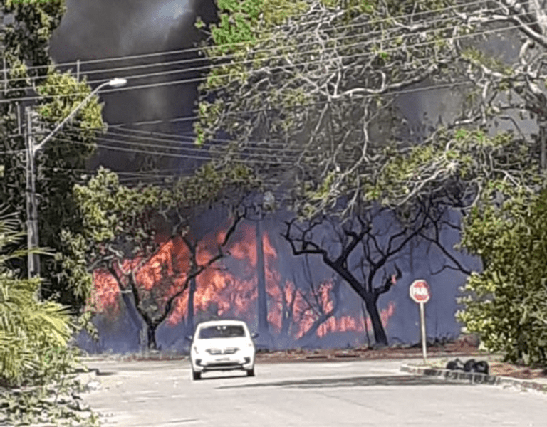 O fogo não atingiu as casas, mas consome a vegetação de forma rápida devido ao clima seco. Segundo moradores o fogo começou pela manhã e ganhou força no período da tarde devido as rajadas de vento na região.