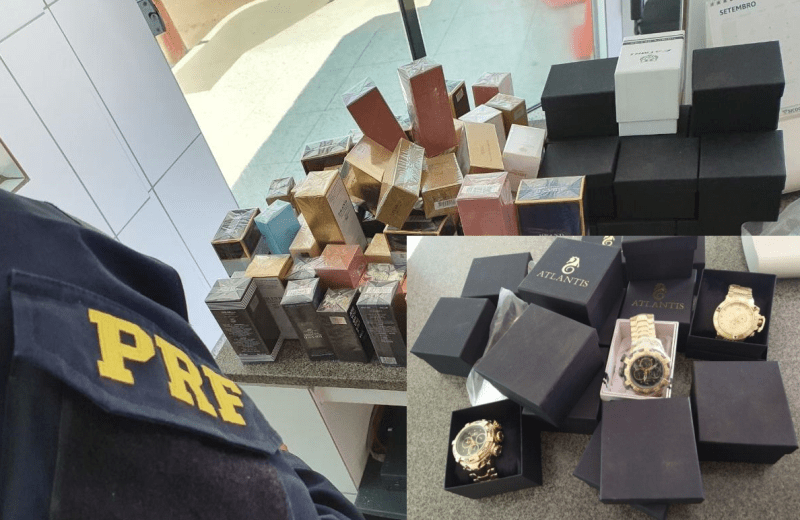 A Polícia Rodoviária Federal (PRF) apreendeu no final da manhã dessa segunda-feira, 07, perfumes e relógios importados ilegalmente e transportados sem documento fiscal. A ocorrência foi registrada no km 663 da BR-153, município de Gurupi, sul do Tocantins. Os produtos eram transportados como encomendas em ônibus com itinerário São Bernardo do Campo/SP x Fortaleza/CE.