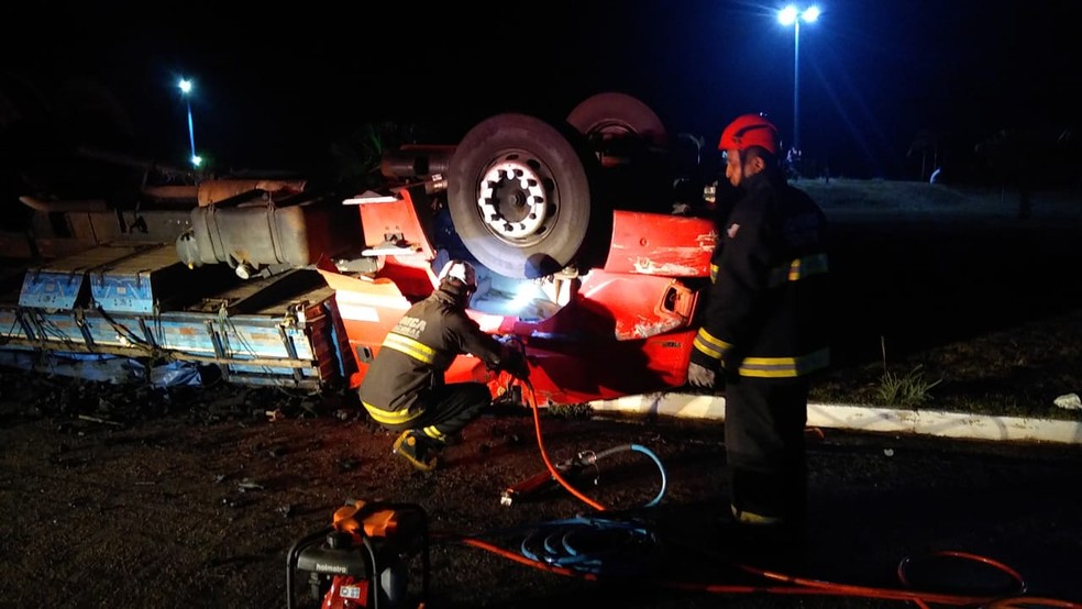 A vítima ficou presa embaixo da cabine do veículo e sofreu parada cardiorrespiratória. O caminhão estava carregado com carvão vegetal e parte da carga ficou espalhada pelo gramado e a pista.