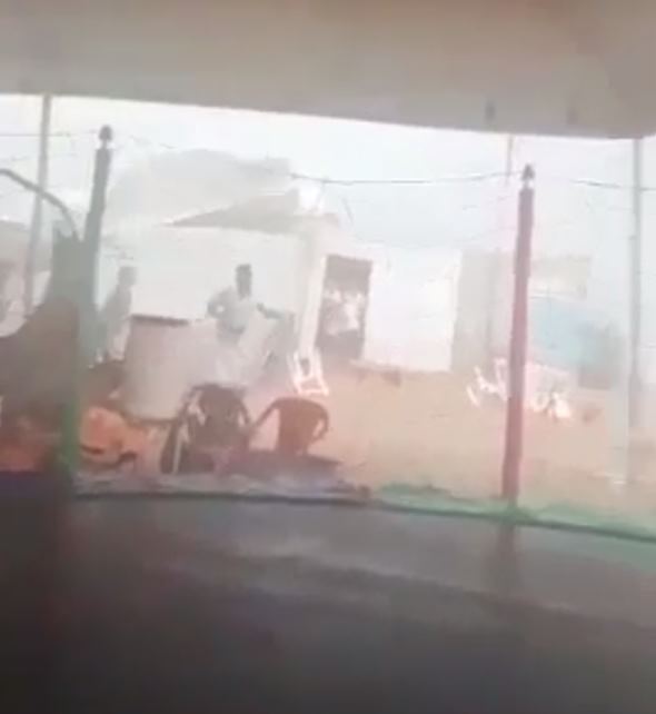 Um vídeo que circula nas redes sociais mostra um vendaval levando a areia, barracas e cadeiras da praia do Funil em Miracema do Tocantins, neste domingo (26).