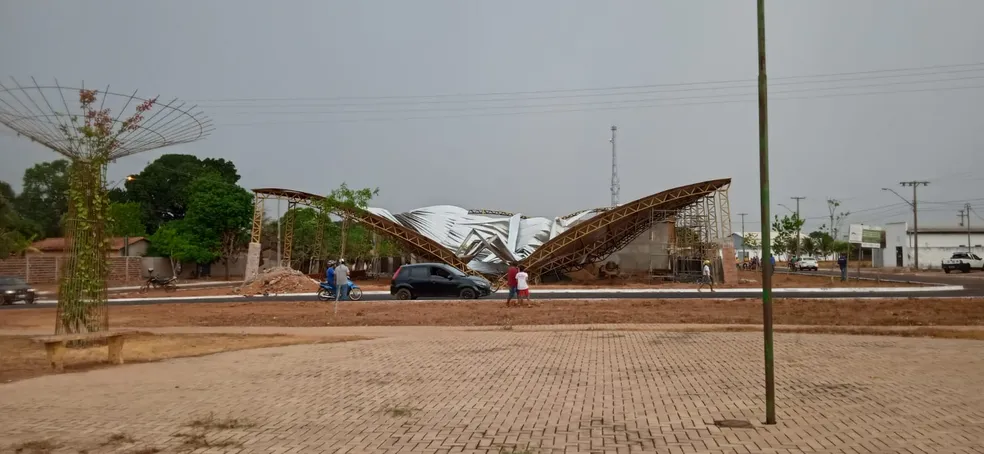 Imagens de um ginásio de esportes que estava sendo construído no centro de Barrolândia circulam nas redes sociais mostrando o telhado da obra destruído. De acordo com informações, o telhado cedeu durante uma ventania na sexta-feira (16).