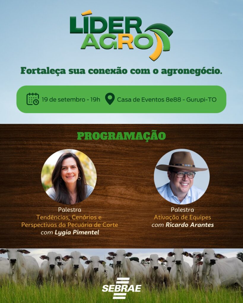 Em Gurupi, o agronegócio é uma pauta importante e pensando nesta prerrogativa o Sebrae Tocantins realiza no dia 19 de setembro, o seminário “Líder Agro”. A iniciativa, que tem a proposta de fortalecer as habilidades de liderança no setor agropecuário, inicia às 19 horas e conta com palestras e workshops destinados a gestores e líderes do campo.
