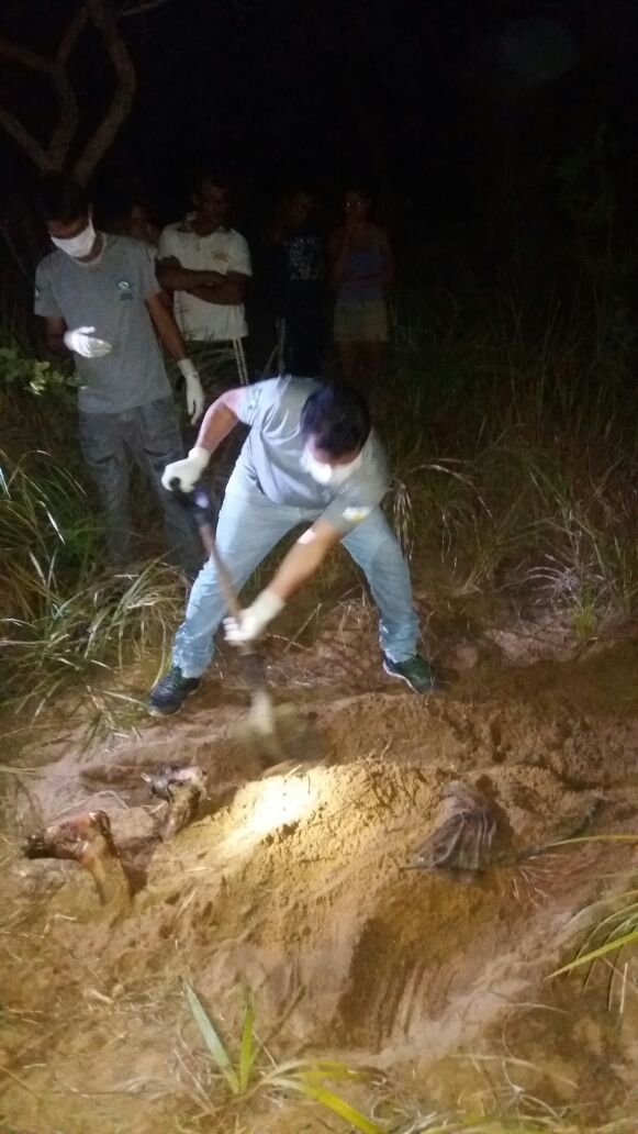 A Polícia foi acionada e a perícia esteve no local para realização dos procedimentos de praxe. O corpo ainda não foi identificado. Pelas características a polícia suspeita de homicídio e ocultação de cadáver. Ao lado da cova havia uma pequena bolsa e vários cartuchos de espingarda.
