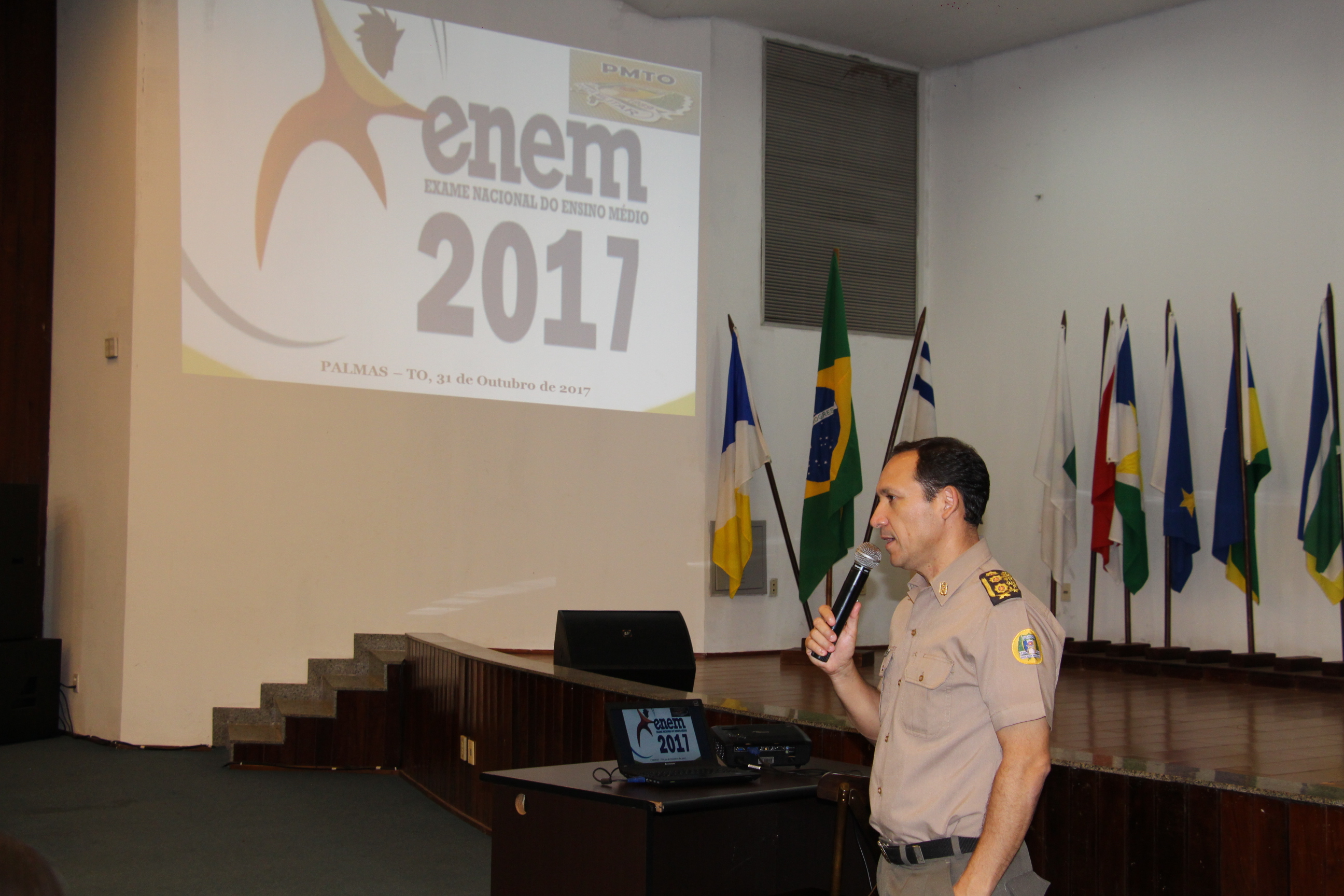 Foi apresentado, na manhã desta terça-feira, 31, no Quartel do Comando Geral da Polícia Militar, em Palmas, o roteiro do esquema de segurança das provas do Exame Nacional de Ensino Médio (ENEM/2017) no Tocantins. Serão empregados mais de 200 policiais militares na escolta das provas e segurança nas escolas de 30 municípios tocantinenses. A avaliação ocorre nos dias 5 e 12 de novembro em todo o país.