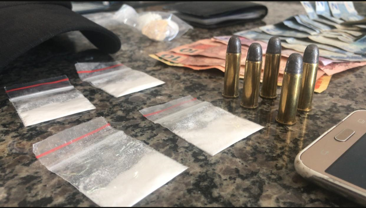 Além do carro roubado já recuperado na noite de sábado para domingo, os Policiais Militares recuperaram mais 04 botijões de gás furtados nessa casa, onde foram apreendidos também mais 05 munições calibre 38, R$ 75,00 em dinheiro, 03 celulares e 01 tablet de origem duvidosa e produtos entorpecentes, sendo 04 papelotes de cocaína e 03 papelotes de crack.