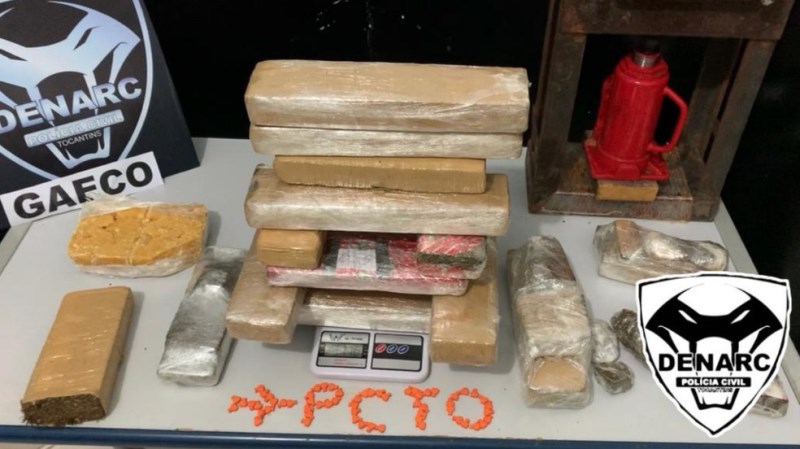 Em mais uma ação contra o tráfico de drogas em Palmas, a Polícia Civil do Tocantins, por meio da 1ª Divisão Especializada Repressão a Narcóticos (1ª Denarc) de Palmas, efetuou na noite desta segunda-feira, 5, na região Sul da Capital (Aurenys e setor Santa Fé), a apreensão de mais de 15 quilos de maconha, um quilo de cocaína, um quilo de crack, 30 comprimidos de LSD (ácido Lisérgico), uma pequena máquina de prensagem de cocaína e uma motocicleta clonada.