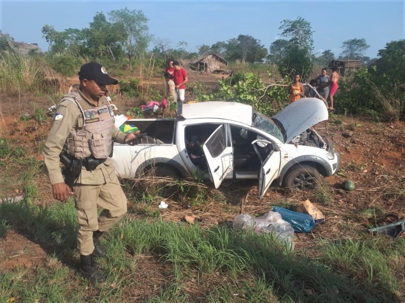 Segundo os militares, o acidente ocorreu por voltas das 7h43, no Km 30 da TO-404. Os ocupantes da camionete foram identificados como José Miranda Barbosa e Maria Olívia Maciel Barbosa. Ambos tiveram apenas escoriações, foram avaliadas pelos socorristas e levados para um hospital em Augustinópolis.