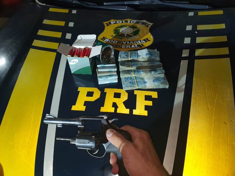 Na abordagem, o homem demonstrou certa irritabilidade. Ao ser questionado se possuía algum objeto ilícito no veículo ele negou. No entanto, diante do comportamento do homem, a equipe realizou uma vistoria no veículo e logo encontrou um revólver calibre .22, além de 169 munições do mesmo calibre e outras 30 munições para arma calibre .32. Ainda na fiscalização, a equipe encontrou 25 mil reais em espécie.