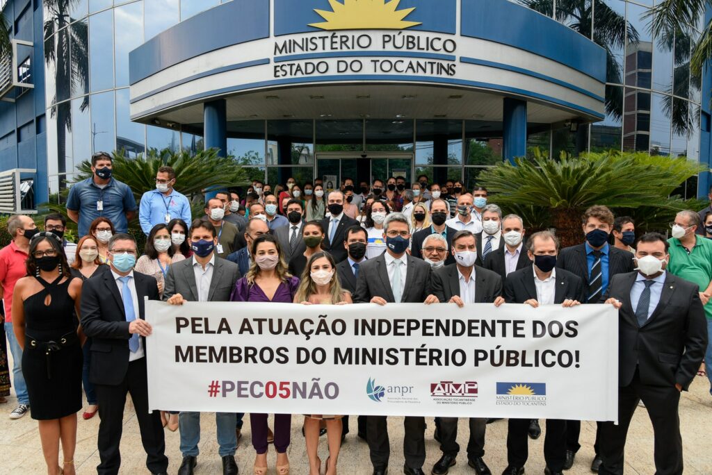 A manifestação, realizada em frente à sede do Ministério Público do Estado do Tocantins, em Palmas, foi organizada pela Procuradoria-Geral de Justiça, Associação Tocantinense do Ministério Público (ATMP) e Associação Nacional dos Procuradores da República (ANPR).