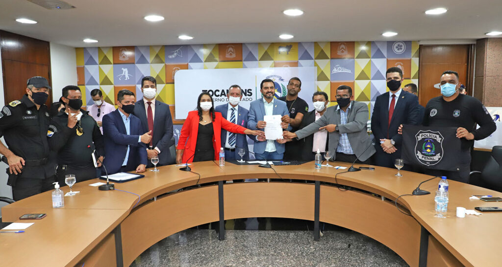 O governador do Estado do Tocantins, em exercício, Wanderlei Barbosa, assinou nesta terça-feira, 26, Medida Provisória (MP) que prorroga o pagamento de indenizações a servidores do Sistema Penitenciário e Prisional e do Sistema Socioeducativo. O chefe do Executivo Estadual também entregou, simbolicamente, mais de 59 mil itens de segurança à Polícia Penal e se comprometeu em apreciar o Plano de Cargos, Carreiras e Subsídios (PCCS) e o Estatuto da Polícia Penal para posterior envio à Assembleia Legislativa do Tocantins, ainda neste ano.
