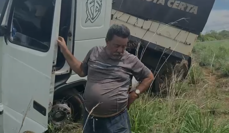 Circula nas redes sociais um vídeo de um homem aparentemente tonto e com a consciência perturbada ao lado de um caminhão tombado na pista na TO-070, entre as cidades de Brejinho de Nazaré e Aliança, região central do Tocantins.