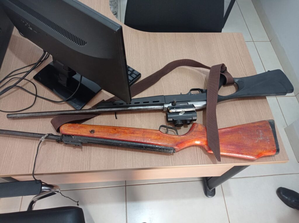 “Com a permissão da vítima, os policiais adentraram na residência, sendo que a própria mulher entregou aos agentes, duas espingardas, sendo uma de calibre 22, e outra de pressão, mas adaptada ao calibre 22, bem como oito munições calibre 22, e carregador do mesmo calibre”, ressaltou a autoridade policial.