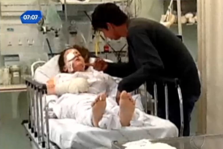 Uma cirurgia de emergência foi feita para tentar recuperar os dois dedos da mão da jovem, que também foram atingidos. Manuela está internada no Hospital de Pronto-Socorro. Ela perdeu a visão do olho direito.