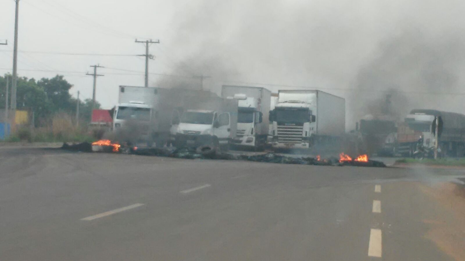 Os veículos seguem parados interditando a pista central, do perímetro urbano, cerca de 1 km nos dois sentidos da rodovia. Os manifestantes também queimaram pneus para realizar o bloqueio. O ato segue a mobilização nacional.