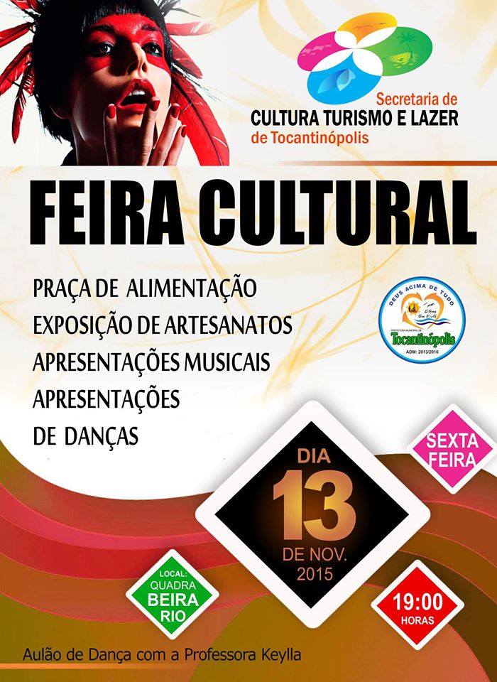 A Prefeitura de Tocantinópolis, por meio da Secretaria Municipal de Cultura, Turismo e Lazer vão promover na próxima sexta-feira, 13, na Quadra de Esportes da Beira Rio, a primeira edição da Feira Cultural. O evento terá início às 19h e contará com diversas opções de entretenimento.
