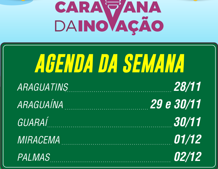 A caravana já percorreu as cidades de Porto Nacional, Paraíso, Colinas, Gurupi e Taquaralto, estará hoje, dia 28, em Araguatins e irá percorrer durante a semana as cidades de Araguaína, Guaraí, Miracema, e termina em Palmas no dia 02 de dezembro. As inscrições são gratuitas.