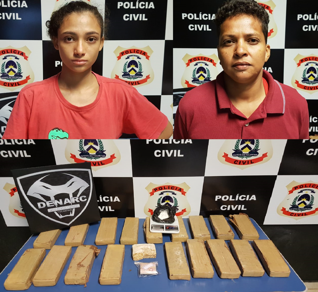 A Polícia Civil do Estado do Tocantins, por intermédio da Delegacia Especializada na Repressão a Narcóticos (Denarc), efetuou, no final da tarde desta segunda-feira (19), em Palmas, a apreensão de mais de 30 kg de drogas e prendeu em flagrante delito pelos crimes de tráfico de drogas e associação para o tráfico, Sebastiana Cruz Sousa, de 30 anos, e Jheovana Letícia Cruz dos Anjos, de 18 anos de idade.