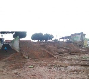 Conforme informações, no local aonde houve o desmoronamento estava acontecendo uma obra e, após a retirada do piso que protegia a estrutura, com a forte chuva, houve infiltração que evoluiu e causou uma erosão derrubando  a mureta de proteção que ficava a cerca de 4 metros de altura que despencou.