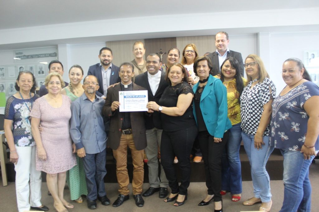Numa iniciativa da vereadora Míria Lustosa (MDB), a sessão ordinária da Câmara Municipal de Gurupi, realizada na manhã desta quarta-feira (06), prestou homenagens ao padre Vilmário Soares Lustrosa, que recebeu uma Moção de Aplausos pelos relevantes trabalhos prestados à comunidade da Paróquia Nossa Senhora de Fátima, localizada no Setor Aeroporto.