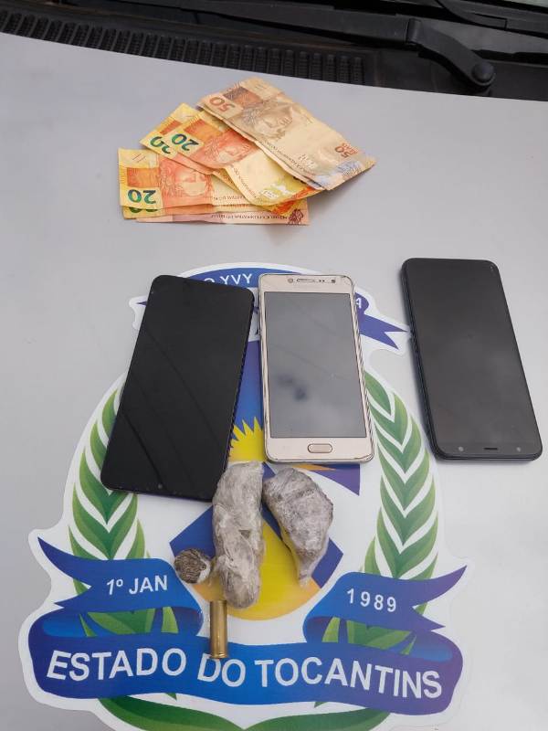 Acionados via SIOP – Sistema Integrado de Operações, a equipe de policiais militares deslocou até o endereço supracitado para prestar apoio a uma viatura da cidade de Goiatins. Ao chegar no local foi realizada uma abordagem em um veículo Volkswagen Gol de cor vermelha onde se encontravam três indivíduos 18, 20 e 22 anos, momento em que foram localizados dois tabletes de substância análoga a maconha e uma cápsula calibre .38 deflagrada. Ao ser questionado um dos suspeitos, um homem de 18 anos afirmou que uma porção do entorpecente era de sua propriedade.