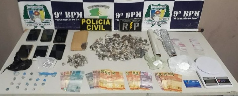Ao todo, os policiais apreenderam quase R$ 600,00 reais em espécie, mais de meio quilo de maconha, 100 gramas de cocaína, aproximadamente 35 pedras de crack, seis aparelhos celulares, dentre outros materiais ligados ao tráfico. Os objetos aprendidos juntamente com os suspeitos e menores foram entregues ao plantão na Central de Flagrantes para as providências legais cabíveis