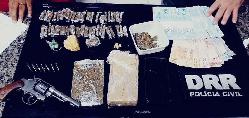 Com base nas informações levantadas, os policiais civis da DRR e da DENARC partiram para Nova Olinda e foram até a casa apontada como sendo um dos esconderijos dos suspeitos. Durante buscas realizadas no interior do imóvel, eles localizaram e apreenderam grandes quantidades de maconha, crack, bem como várias porções de maconha já embaladas e prontas para a venda. Em continuidade às buscas, os agentes também localizaram uma arma calibre 22, várias munições intactas do mesmo calibre, além da quantia de R$ 3.900,00, em espécie, proveniente da venda de drogas.