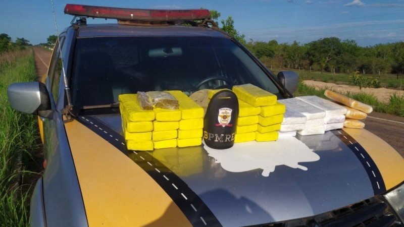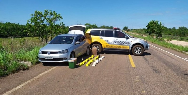 A polícia informou que são cerca de 55 kg de maconha, crack e pasta base de cocaína. As drogas estavam dentro de uma caixa térmica no veículo.