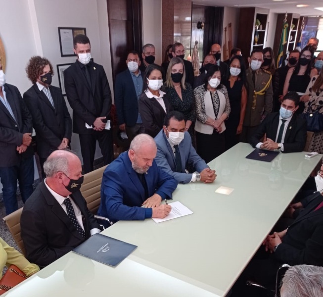 O Governador Mauro Carlesse (DEM) transmitiu, durante solenidade realizada na manhã dessa quinta-feira, 26 de novembro, no Palácio Araguaia, seu cargo para o Presidente do tribunal de Justiça do Tocantins, desembargador Helvécio de Brito Maia Neto. A troca de comando aconteceu por causa da ausência do governador e do vice-governador Wanderlei Barbosa que saem de férias pelo período de sete dias.