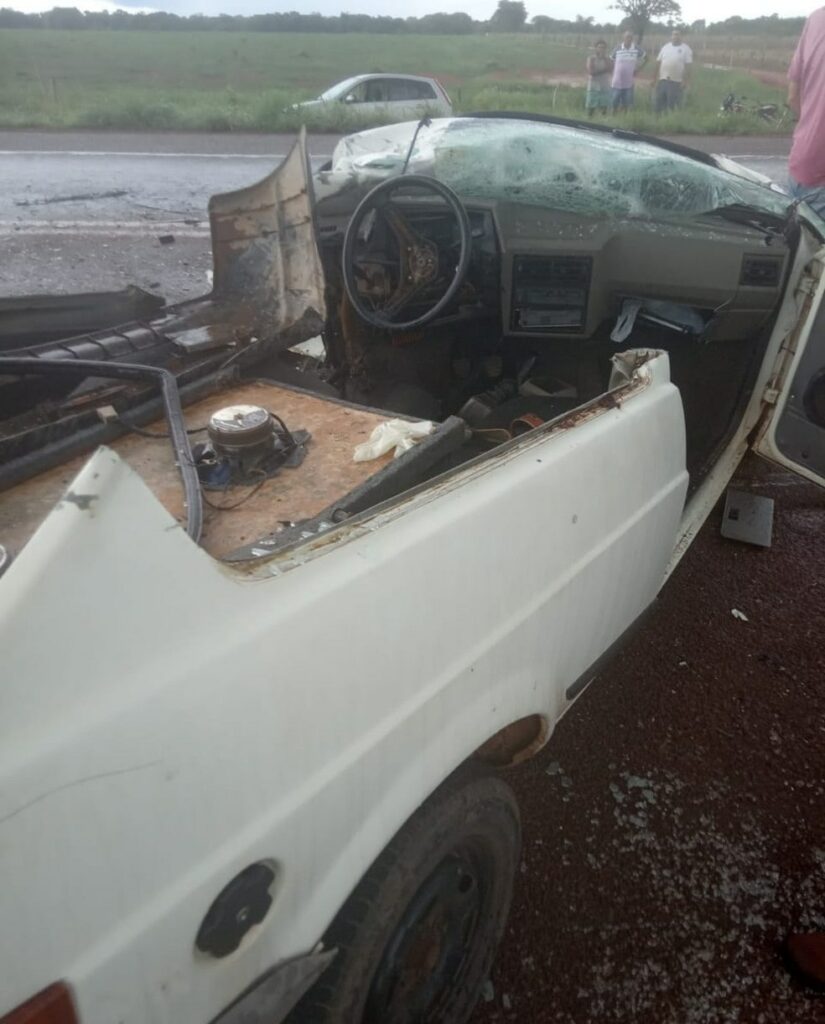 Imagens feitas no local do acidente e que circulam nas redes sociais mostram que o veículo ficou completamente destruído e teve toda a parte de cima arrancada com a força do impacto. O nome do condutor não foi divulgado, ele seria morador de Figueirópolis.